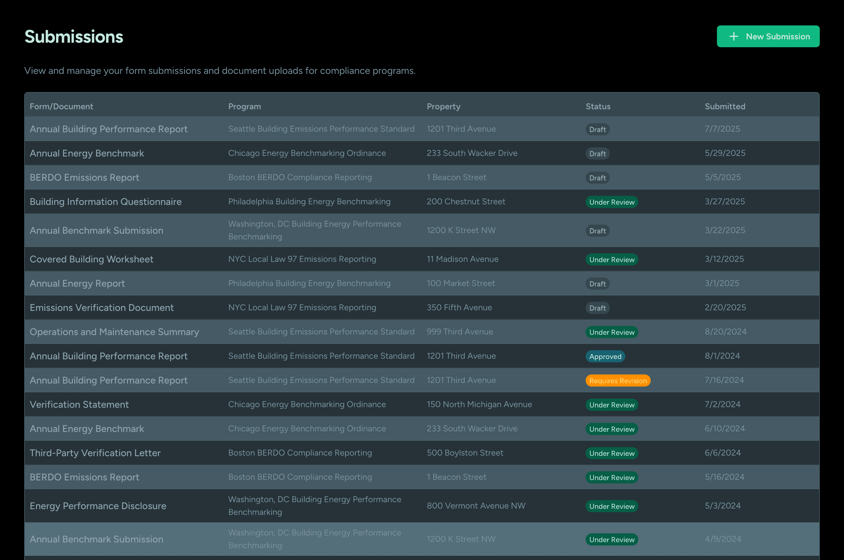 Keep track of which properties are subject to which local requirements, and manage deadlines, tasks, and related workflows more clearly.