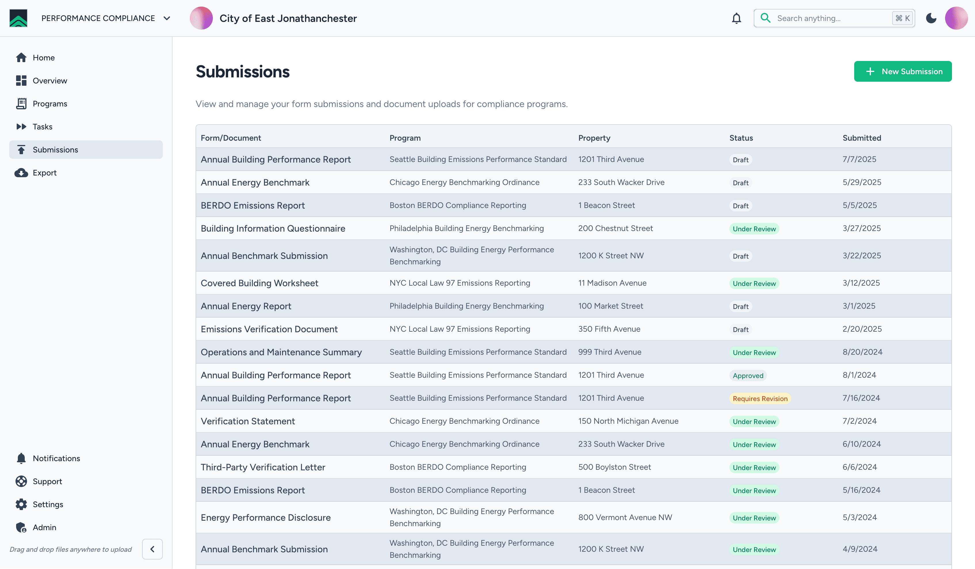 See compliance status across the entire portfolio, not just one building at a time.